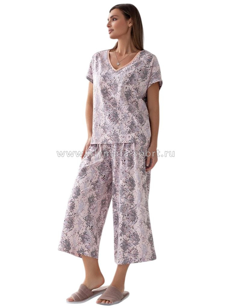 Футболка женская Vilatte D49.153 кофейно-пудровый питон