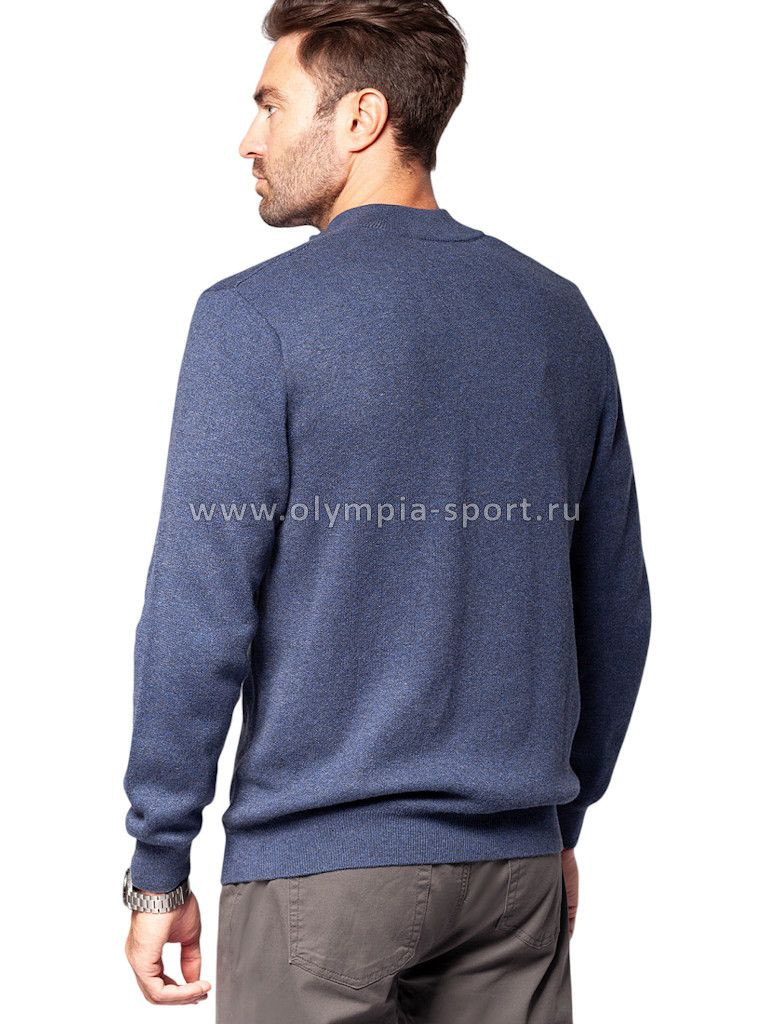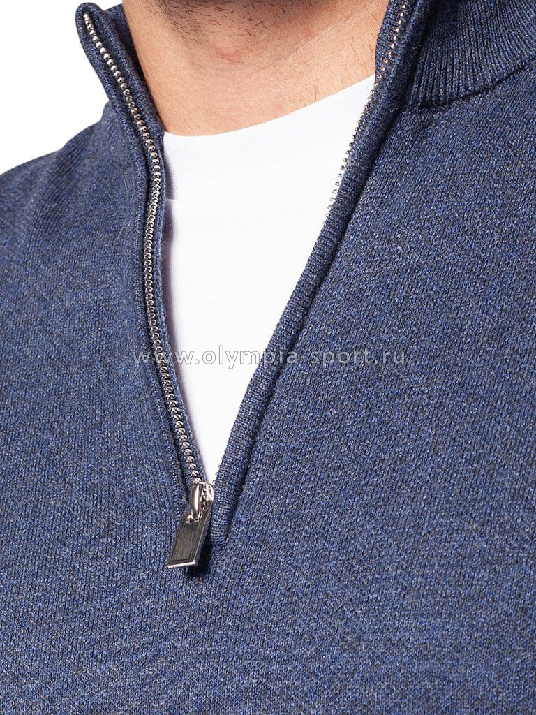 Для изготовления светло-синего джемпера с воротом, застегивающимся на молнию, использовали мягкий трикотаж, связанный из премиального хлопка с добавлением акрила. Двуслойное жаккардовым плетение, вязка с фактурой типа «пике», благодаря чему джемпер имеет среднюю плотность, эластичноть и, при этом, формоустойчивость. Греет за счет иск.шерсти (ПАН) в составе, а премиальный хлопок помогает защитить изделие от скатывания. Такой состав гигроскопичен, греет, но абсолютно не колет.
