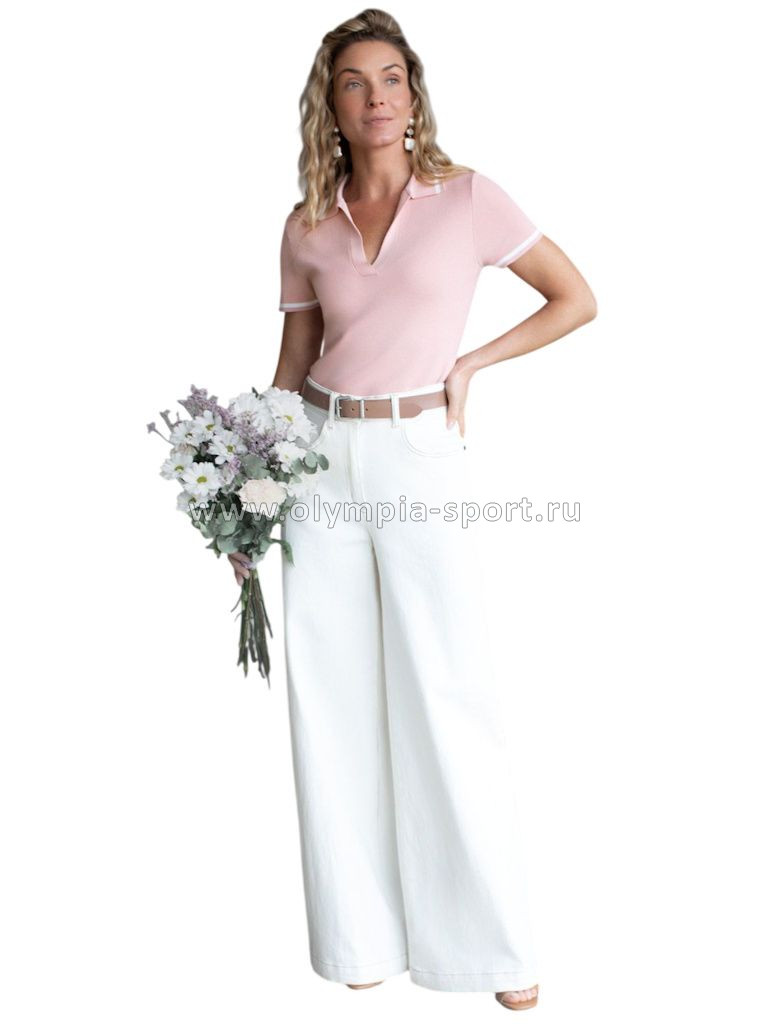 Легкий джемпер светло-розового цвета с V-вырезом и отложным воротником идеально подходит на весну и лето. Вязка в тонкий рубчик из вискозы дарит приятный комфорт и ощущение свежести в теплую погоду. Полуприлегающий крой подчеркивает силуэт, а универсальная длина позволяет сочетать джемпер с разными элементами гардероба. Контрастная отделка в виде тонких полосок добавляет стильный акцент, создавая выразительный образ. V-вырез подчеркивает зону декольте и визуально вытягивает шею, делая фигуру более изящной, а классический отложной воротник делает внешний вид более аккуратным и завершенным. Джемпер отлично смотрится на больших размерах благодаря продуманному крою и полуприлегающему фасону. Этот джемпер с коротким рукавом станет незаменимой частью гардероба в сезоны, когда хочется легкости и элегантности одновременно. Лаконичный дизайн обеспечивает простоту комбинирования с другими вещами и будет универсальной базой для создания разнообразных комплектов — от офисного до непринужденного городского стиля.