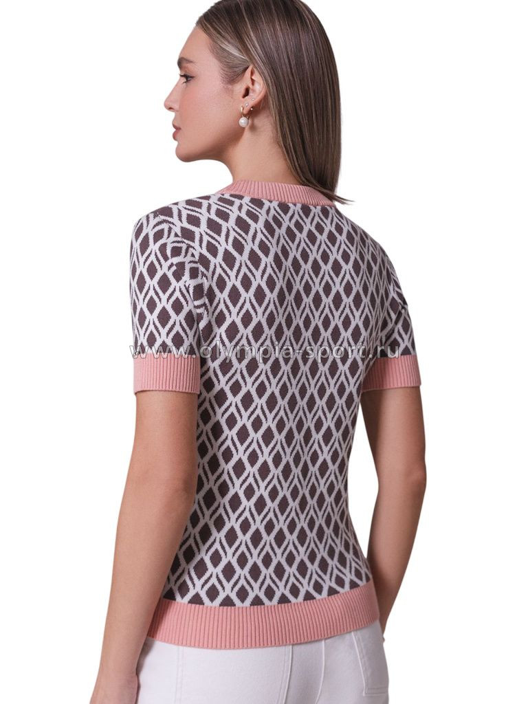 Джемпер с коротким рукавом жаккардовой вязки — универсальная и стильная вещь для весны и лета. Джемпер кофейно-белого цвета выполнен из приятной к телу вискозы, которая дарит ощущение комфорта даже в теплую погоду, а качественная жаккардовая вязка сохраняет форму после стирки. Контрастная отделка гармонично сочетается с выразительным геометрическим рисунком, который придает образу индивидуальность и современность. Принт немного напоминает благородный орнамент аргайл. Вискоза Джемпер отлично смотрится на больших размерах благодаря продуманному крою и полуприлегающему фасону. Этот джемпер с коротким рукавом станет незаменимой частью гардероба в сезоны, когда хочется легкости и стиля одновременно.