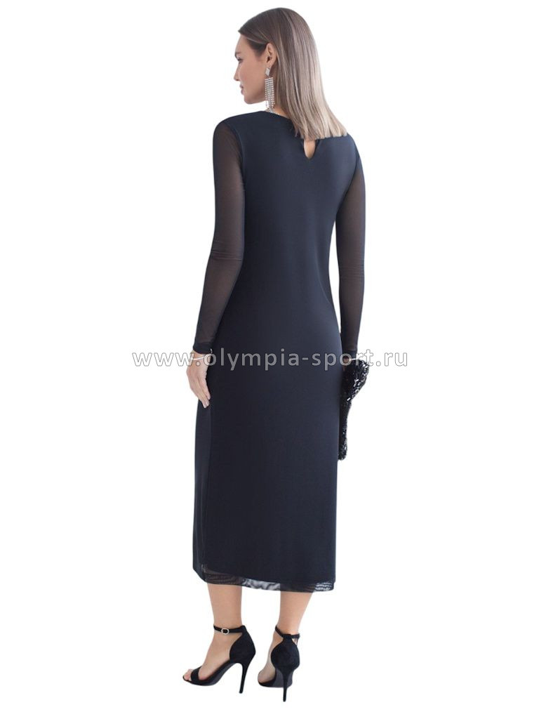Элегантное платье прямого кроя черного цвета выполнено из воздушной сетчатой ткани с прозрачными рукавами, придающими образу лёгкую игривость. Мягкая вискозная подкладка обеспечивает комфорт, сохраняя при этом эффект полупрозрачности. Универсальный черный цвет делает платье идеальным для базового гардероба.