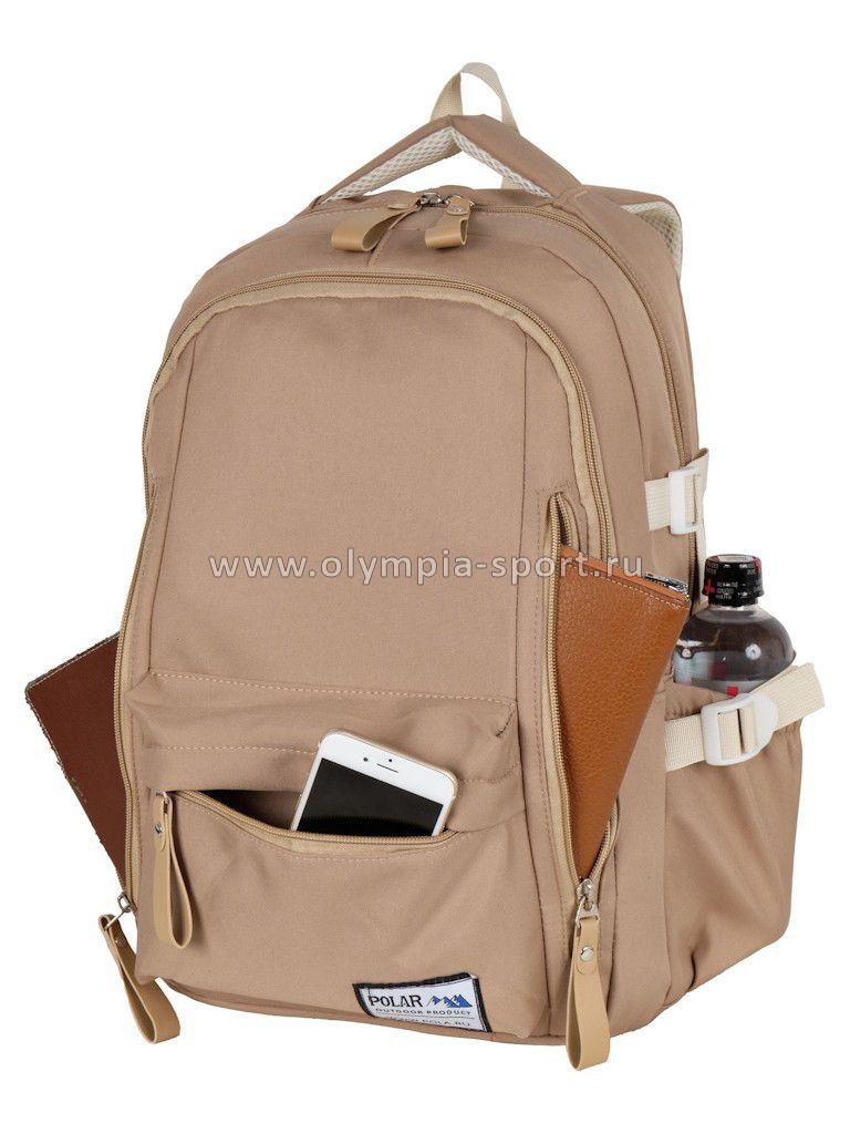 Городской рюкзак Polar для повседневной носки. Два независимых отделения на молнии формата А4. Внутри большого отделения открытый карман, где можно разместить планшет/ноутбук или документы, папки . Спереди скрытый карман с боковыми молниями, а так же передний накладной карман. Боковые карманы на резинке с фиксирующими ремнями для регулирования объема рюкзака. Сзади расположен потайной карман Антивор. Спинка и лямки мягкие, с поролоновыми вставками. Сверху рюкзака ручка для переноски и петля для подвешивания. Материал Полиэстер.
